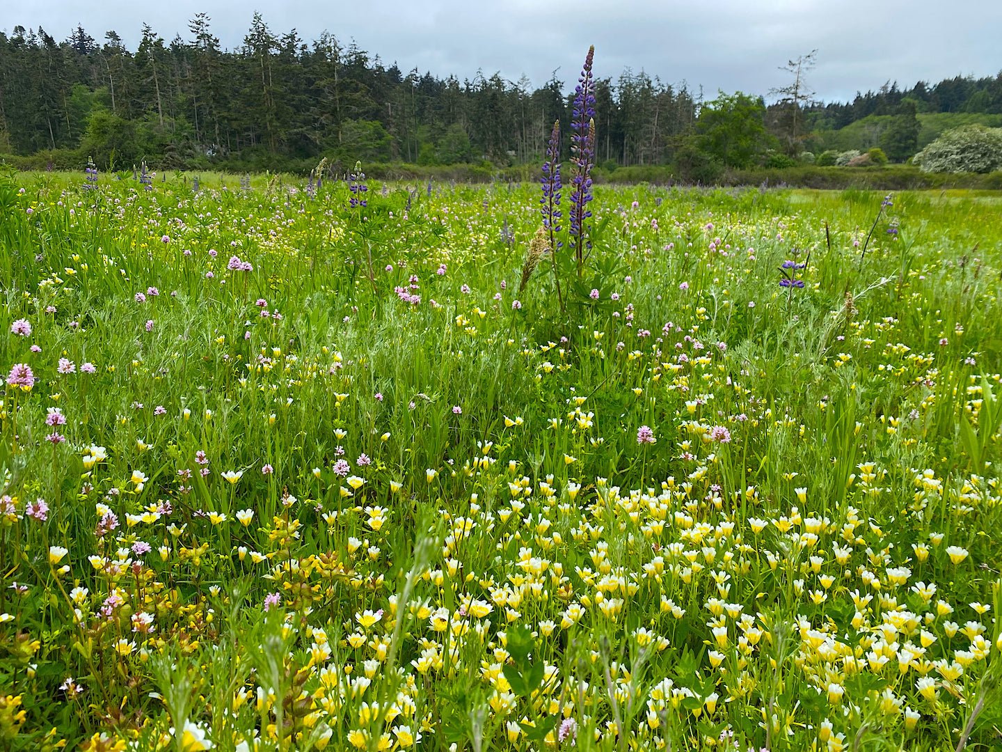 California Native Wild Lawn: By request, we’ve recently developed a low-growing flowering lawn seed mix for California. In this case low growing is about 12-inches when blooming and un-mowed. The origins for this formulation come from Eric’s Xerces Society years where his team trialed seed mixes across the state for more than a decade, evaluating the performance of different native plants in combination with each other. It's not a mix with the durability to withstand football games or horse racing, but it’s pretty sturdy and can be walked on periodically. More importantly it doesn’t require precious irrigation water beyond initial establishment, and can be mowed down during the dry season to reduce flammable biomass. It’s a fire-wise, water-wise, bee and butterfly-producing meadow mix that you can plant in a residential setting. And it’s stunning to look at.