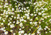 Fragrant popcorn flower has a fascinating ecology as a vernal pool plant. In wild settings, the seeds survive under water in seasonally flooded fields and ponds, germinating as the water recedes, and forming widespread mats of white blooming color in early summer.