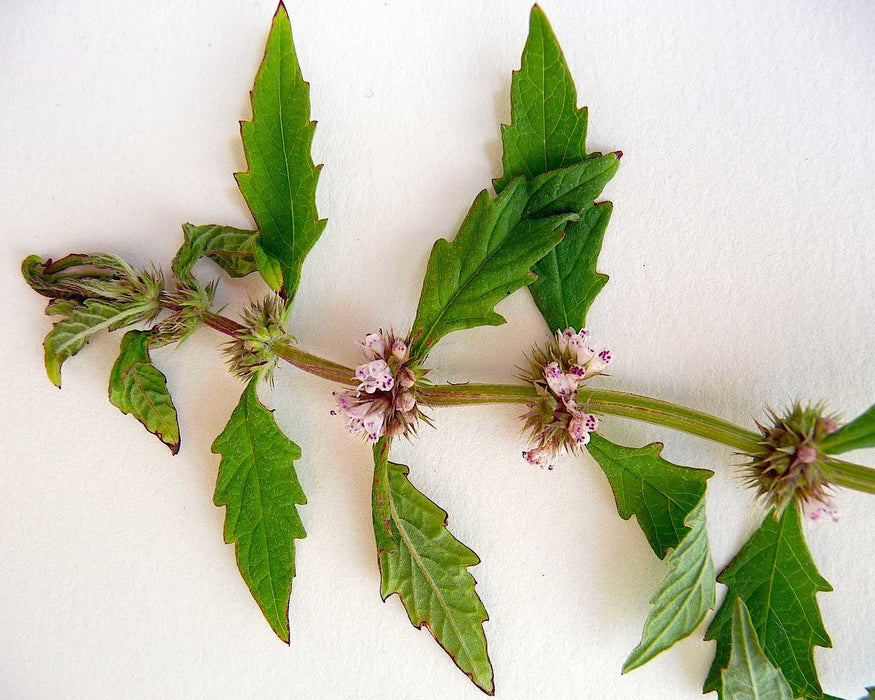 Distantly related to the European horehound (used in candy flavoring), American water horehound is a native mint with interestingly toothed leaves, and dense whorls of white and pink flowers hugging the stem.